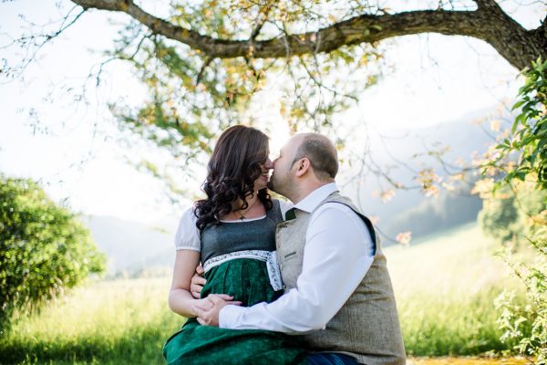 Ländliches Babybauchshooting in Tracht